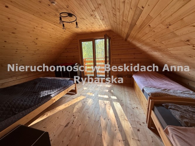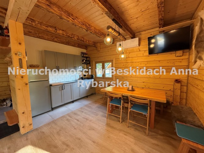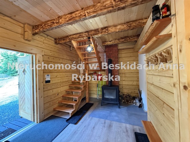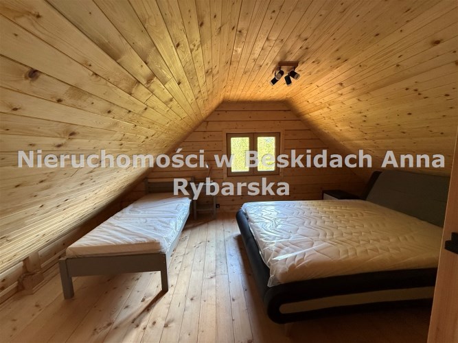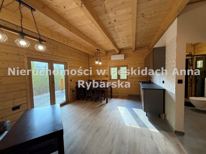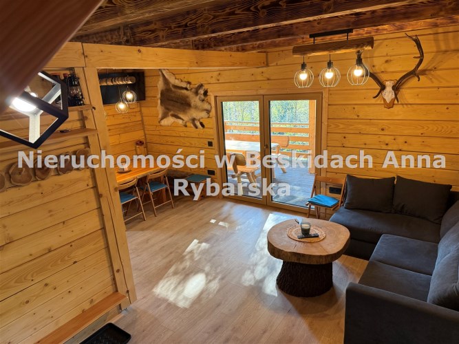 Cudowne miejsce , piękne drewniane domy , odskocznia od cywilizacji - tak najprościej można opisać nieruchomość  , którą Państwu prezentuję . Kocierz Rychwałdzki to wieś położona w Beskidzie Małym , w gminie Łękawica , kilkanaście minut drogi od Żywca . Dwa piękne doinwestowane domki z bala  , bardzo estetyczne i funkcjonalne  gotowe do zamieszkania od zaraz , położone na działce 2914m2  otoczonej lasem mieszanym  . Domki są nowe , pochodzą z 2023 roku  , w każdym znajduje się salon z aneksem kuchennym , łazienka oraz dwie sypialnie na poddaszu . Przedłużeniem przestrzeni  każdego z nich jest taras w widokiem  na lasy i góry .Wszystko wykonane z precyzją i smakiem , kompletnie urządzone . Każdy ogrzewany jest kominkiem plus ogrzewanie podłogowe elektryczne i dodatkowo klimatyzatory , woda ze studni głębinowej ,szambo . Drzwi drewniane , okna PCV 3-szybowe , podłogi z paneli winylowych ,monitoring . Domek pierwszy posiada także garaż , cały teren wokół domków zagospodarowany , połączenie kamienia i kostki brukowej znakomicie współgra z otaczająca przyrodą . Nieruchomość ta znakomicie nadaje się zarówno  pod wynajem jaki i do prywatnego użytku , jedno jest pewne "wszyscy będą zauroczeni i zadowoleni " , zapraszam na prezentację .