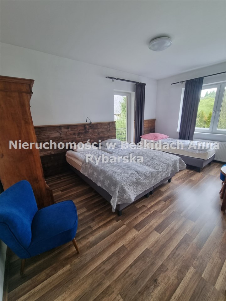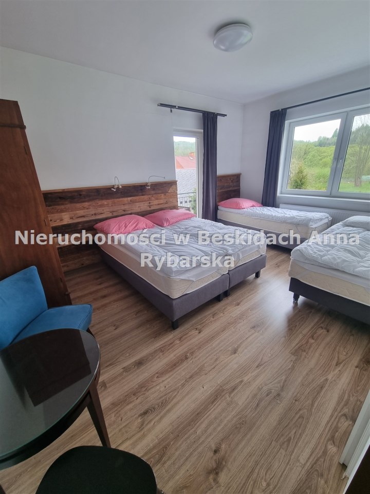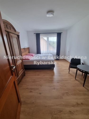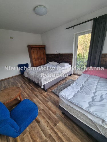 Przed Państwem oferta najmu domu wypoczynkowego położonego w Rycerce Dolnej , obiekt ten przez wiele z powodzeniem funkcjonował jako miejsce wypoczynku i rekreacji całych grup , rodzin , osób chcących spędzić czas z dala od miejskiego zgiełku . Nieruchomość położona jest przy drodze powiatowej biegnącej w kierunku Rycerki Górnej ,Soli i Zwardonia ( do granicy państwa ) , w pobliżu znajduje się dworzec pkp , przebiega ścieżka rowerowa , przepływa rzeka Soła . W promieniu kilku kilometrów znajduje się tężnia solankowa , inhalatorium ,place zabaw , ośrodek zdrowia , liczne sklepy i restauracje . Obiekt ten przeszedł w ostatnich latach gruntowny remont , Właściciele w niezwykle umiejętny sposób połączyli elementy wystroju z lat ubiegłych z nowoczesnym designem . Obok pięknych starych mebli stoją nowoczesne łóżka , fotele , wykonano wiele ciekawych aranżacji . Pierwszy poziom to :kotłownia z dwoma piecami sterowanymi zdalnie (węgiel i pellet ) i zbiornikiem na wodę , kuchnia kompletnie wyposażona ( stal nierdzewna ) ze zmywakiem i piecem wolnostojącym oraz kilka pomieszczeń gospodarczych a także duża jadalnia . Na drugim poziomie (parter) znajduje się przestrony przedpokój , pomieszczenie biurowe , dwa apartamenty - każdy z łazienką oraz mieszkanie składające się z w pełni umeblowanej i wyposażonej kuchni ze spiżarką , pokoju dziennego i łazienki . Kolejny poziom ( I piętro) to trzy przestronne apartamenty z możliwością adaptacji dodatkowo aneksów kuchennych oraz 2 pokoje ze wspólną łazienką . Na drugim piętrze znajdują się kolejnych pięć apartamentów , natomiast trzecie piętro to klimatyczna sala kinowa i trzy kolejne pokoje ( dwa z łazienkami ) . Reasumując , w sumie w obiekcie znajduje się 14 nowoczesnych apartamentów z nowymi łazienkami ( wszędzie baterie z funkcją oszczędzania wody ) mogących pomieścić od 38 do 45 osób , kanalizacja , woda z samociśnienia i studni , monitoring . Wokół nieruchomości jest dużo zieleni z możliwością wykorzystania na przykład na boiska , teren ogrodzony , podjazd utwardzony ; znajduje się tutaj także basen - co prawda nieczynny , ale po modernizacji może funkcjonować z powodzeniem . Wolnostojący garaż to kolejna przestrzeń do wykorzystania jako miejsce do przechowywania , ale także jako dodatkowe lokum . Właściwie obiekt nadaje się do "eksploatacji " od zaraz ,wymaga tylko delikatnego odświeżenia . Jest to jedno z niewielu miejsc w naszej gminie wystawionych do najmu w standardzie zbliżonym do hotelowego ,zapraszam do kontaktu .